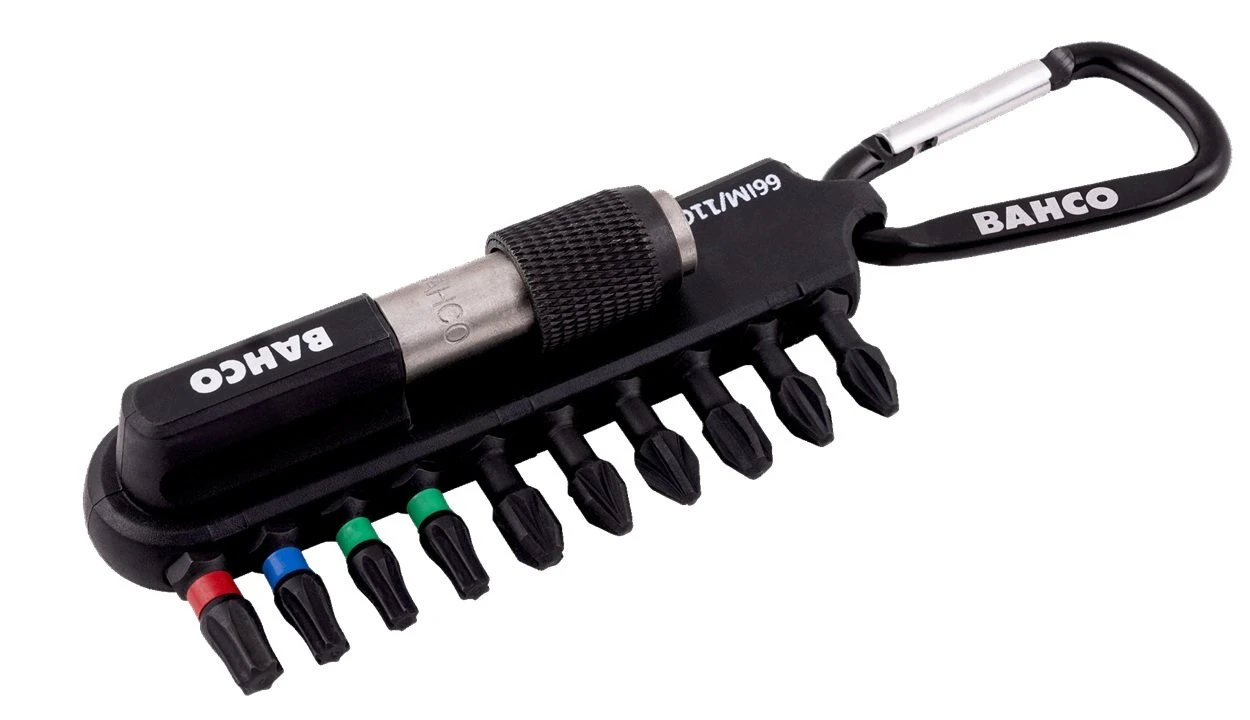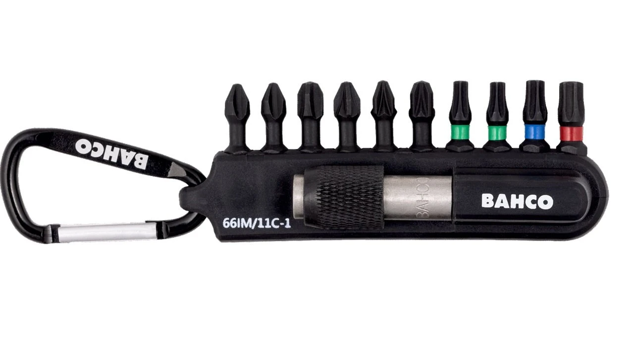 - Bit set of 11 pieces: 10 bits for Phillips, Pozidriv and TORX® head screws and 1 magnetic quick release bit holder