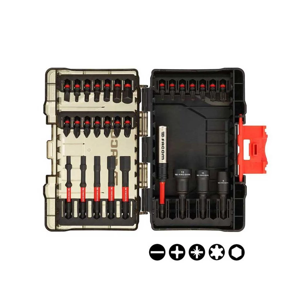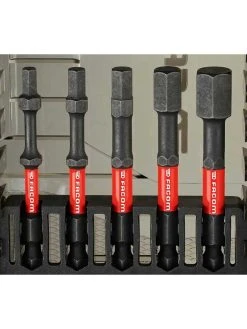 - 25mm: Hex 3, Hex 4, Hex 5, Hex 6, Hex 8, Hex 10, PH1, PH2, PZ1, PZ2 x3, PZ3, SL5.5, T10, T15, T20 x2, T25, T30, T40.