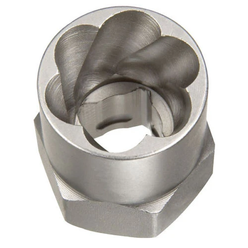 - Unique reverse spiral flute design securely grips and removes stubborn nuts and bolts