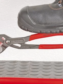 - 87 02 180 KNIPEX Cobra® Push the button for adjustment on the workpiece.