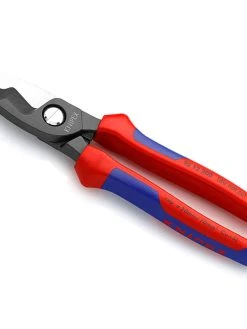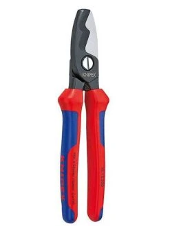 The Knipex 95 12 200 cable shears with twin cutting edges are ideal for cutting copper and aluminium cables, single and multiple wire cables but are not suitable for steel wire and hard drawn copper conductors.