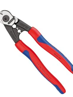 The Knipex 95 61 190 wire rope shears are ideal for medium-hard wire cables up to 7mm diameter without splaying, including those that are extremely strong, such as for example tyre cord. They also have two crimping dies for end caps on Bowden cable sheaths and end ferrules for traction cables and the blades are hardened to approximately 64HRC for added strength and durability