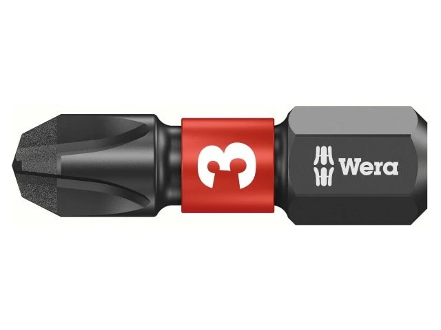The Wera Impaktor 25mm Phillips bits with 1/4in hexagon drive. Designed for use with all heavy-duty impact machines and can be used on any machine. The Impaktor technology ensures an above-average service life even under extreme conditions thanks to a best-possible utilisation of the material properties and optimally designed geometry. Particularly suitable for use with conventional impact drivers, the rough diamond coating reduces the danger of any slipping out of the screw head due to the enhanced frictional resistance.